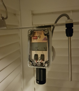 Depending on the measurement, the T64 housing is adapted to various stainless-steel supports, in a vertical position for measuring the temperature of the air under shelter, at 45° for measuring the temperature of the soil and water pan (fixing on the angle of the cage).